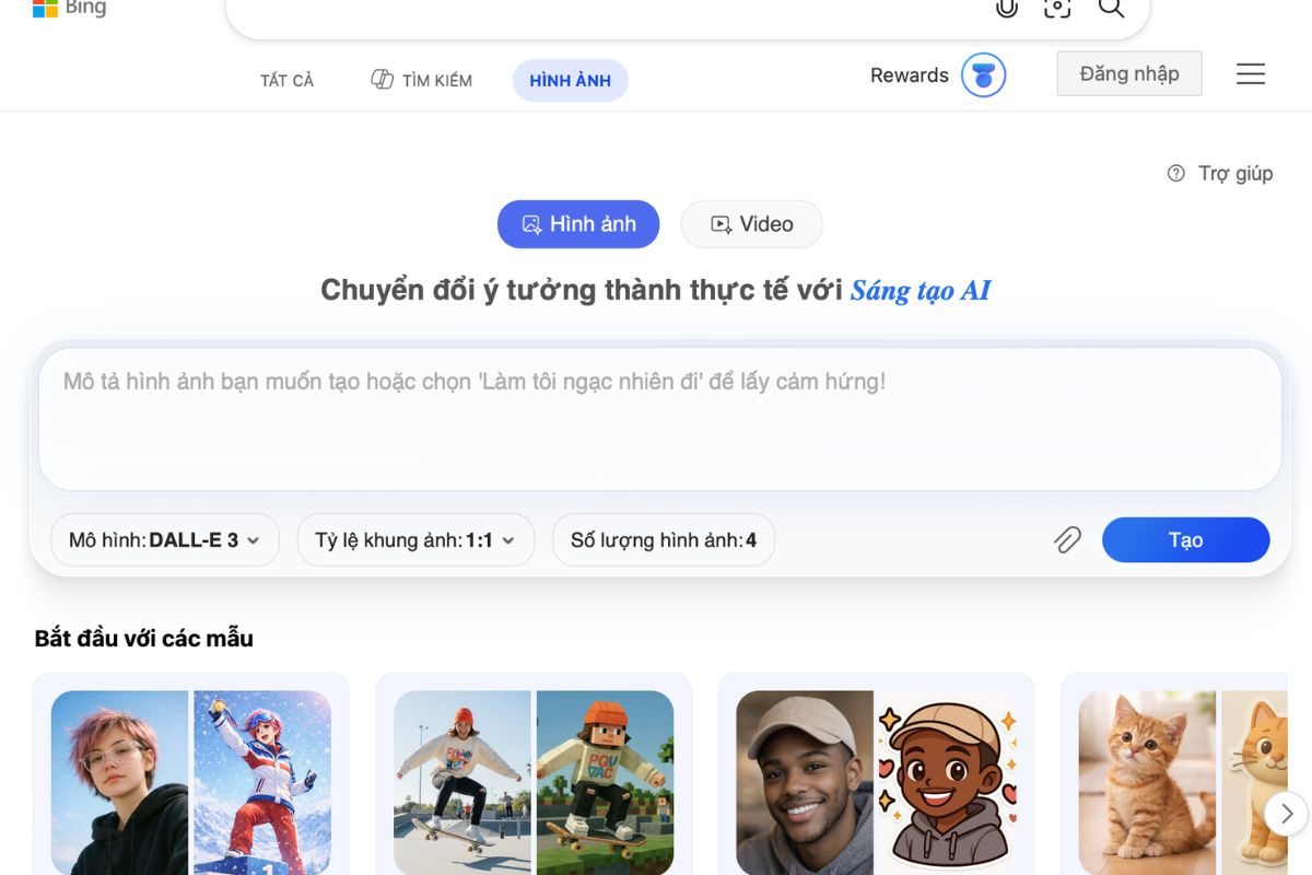 Bing Image Creator là công cụ dễ tiếp cận nhất cho người mới khi muốn thử phần mềm vẽ AI. Công cụ này cho phép tạo ảnh nhanh với prompt đơn giản và không cần thiết lập phức tạp.