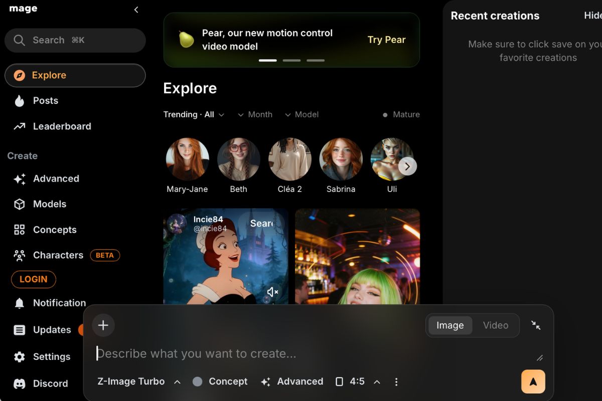 4. Mage Space – Vẽ AI miễn phí online, tùy chỉnh linh hoạt, không cần cài đặt